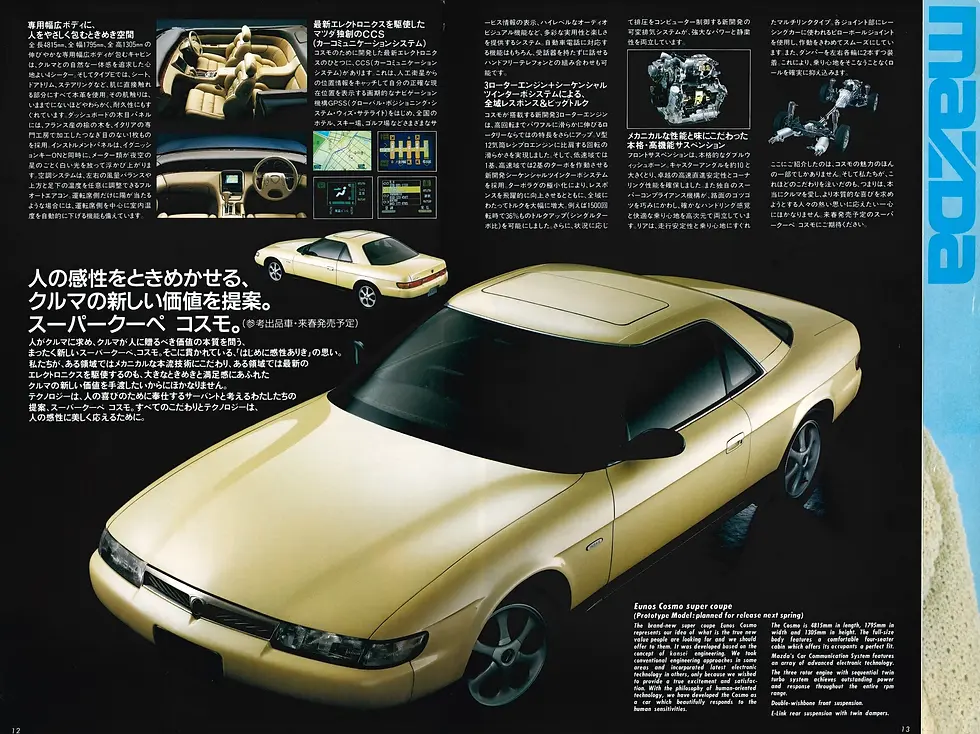 Production of the Eunos Cosmo ended in 1995. The idea of a rotary-powered luxury flagship proved too niche, and Mazda shifted its focus back toward sports cars and racing, where the rotary engine would achieve its most famous successes. The Cosmo remains a reminder of how far Mazda was willing to push its most unconventional engine, not just toward speed, but toward prestige and technological ambition.